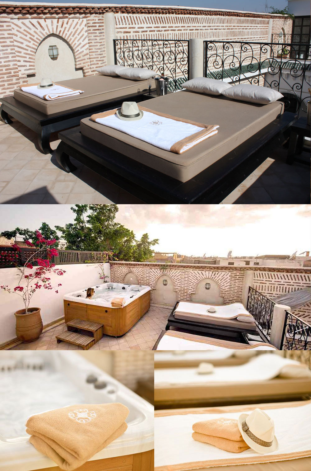 Profitez de notre spa ou de nos bains de soleil directement sur notre terrasse.